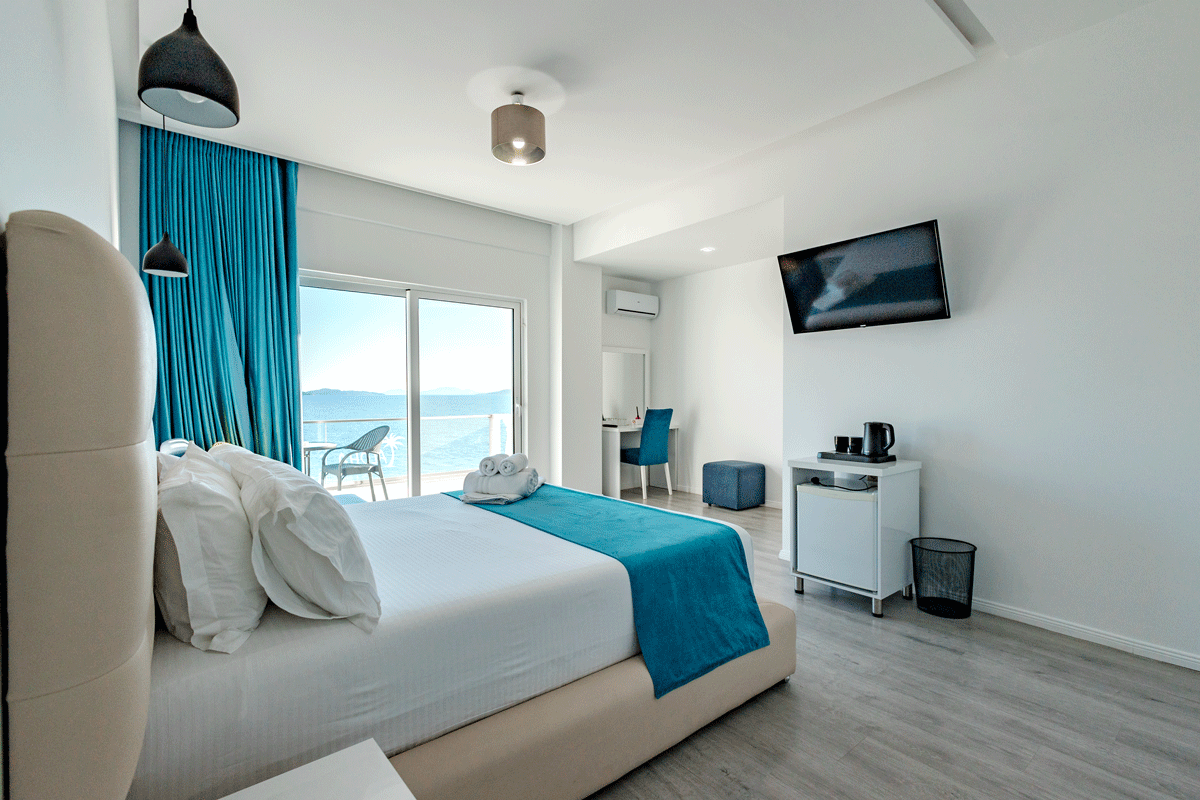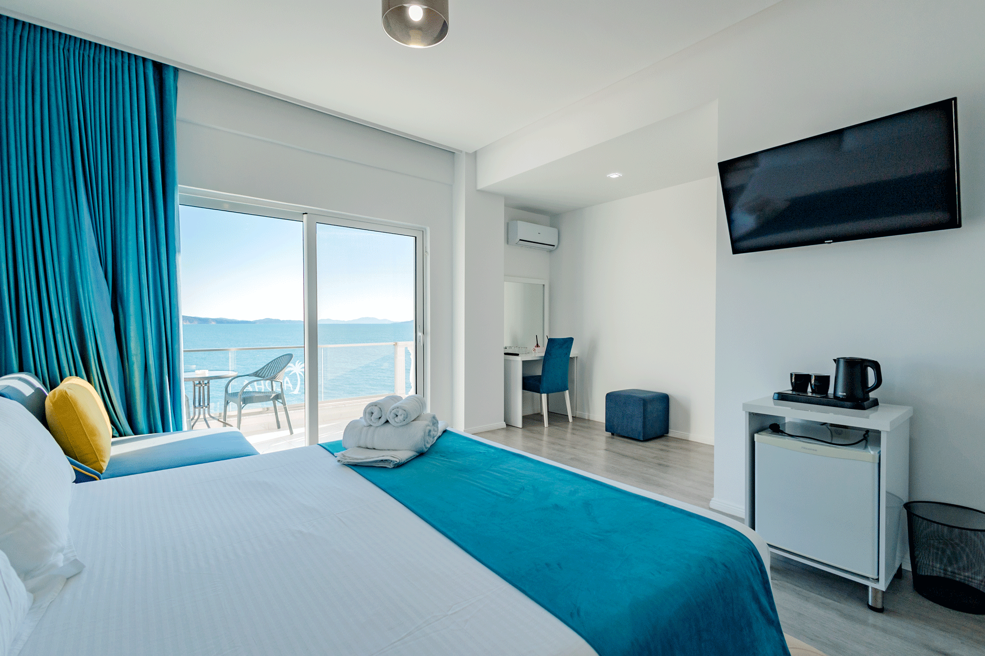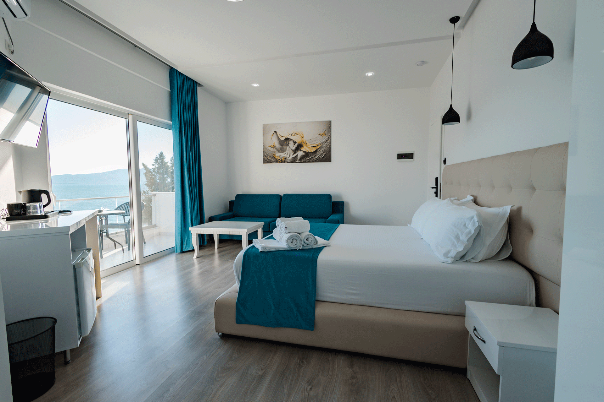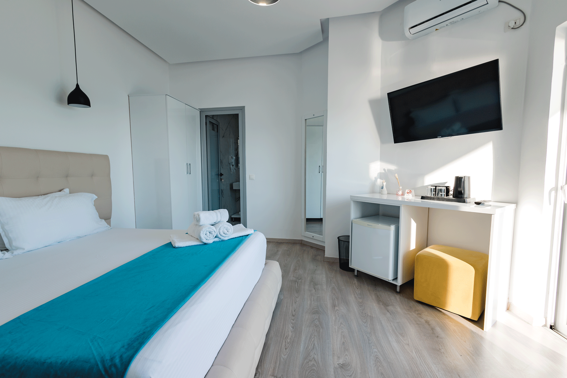 The Deluxe Double Room offers a refined balance of comfort, style, and functionality. Thoughtfully designed with a welcoming ambiance, it provides an elegant space ideal for relaxation after a day by the sea. The room features a well-appointed layout that ensures comfort and privacy, complemented by carefully selected details that enhance the overall stay experience. Perfect for couples or discerning travelers, the Deluxe Double Room invites you to enjoy a serene and comfortable retreat.