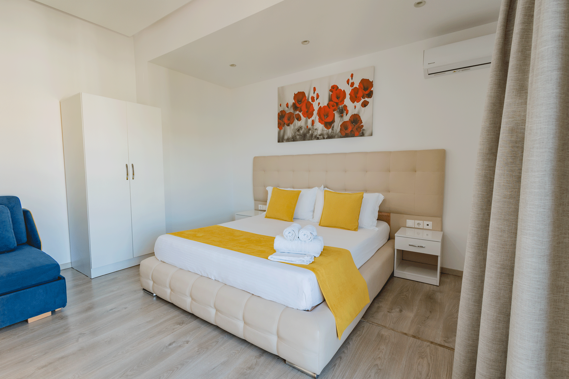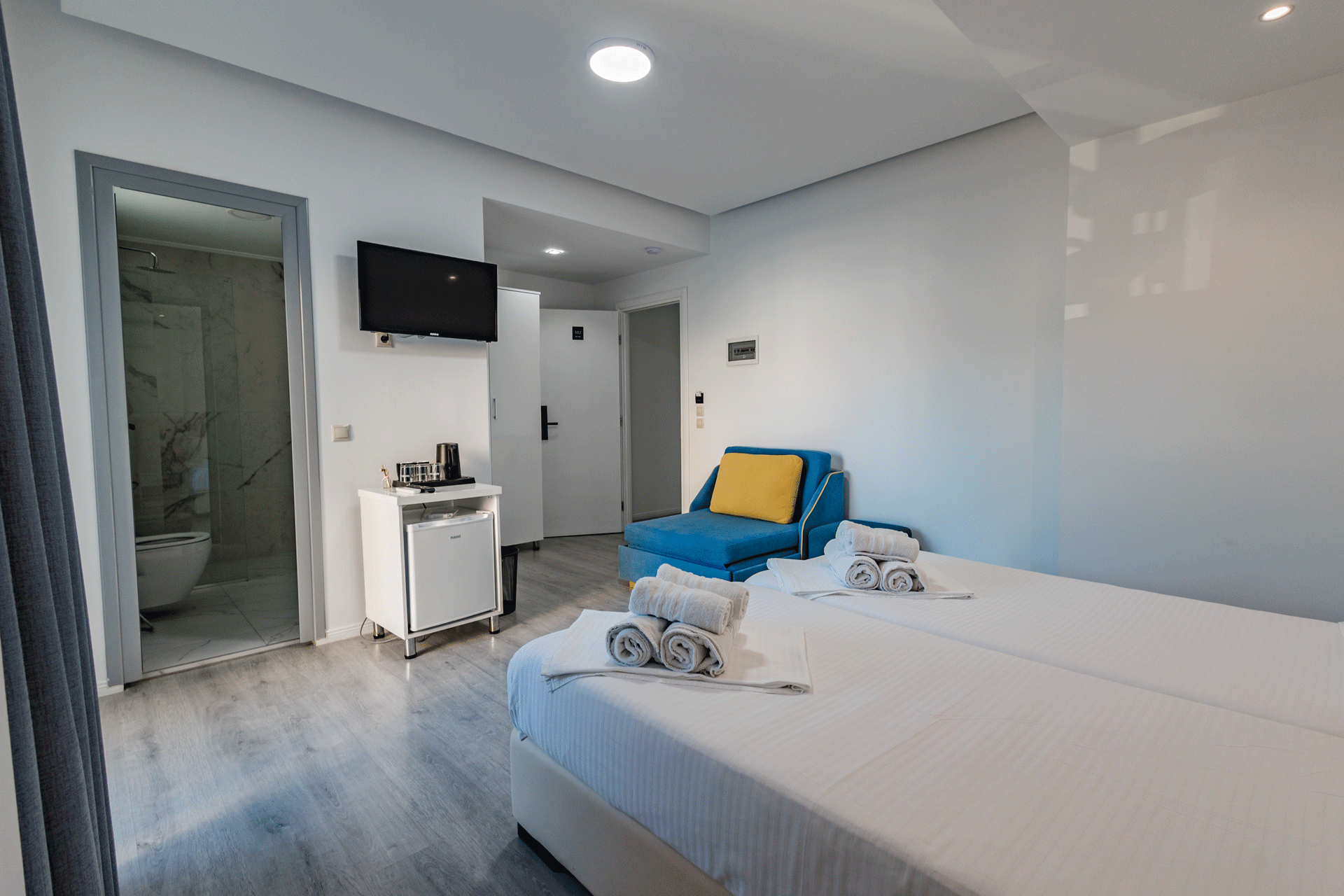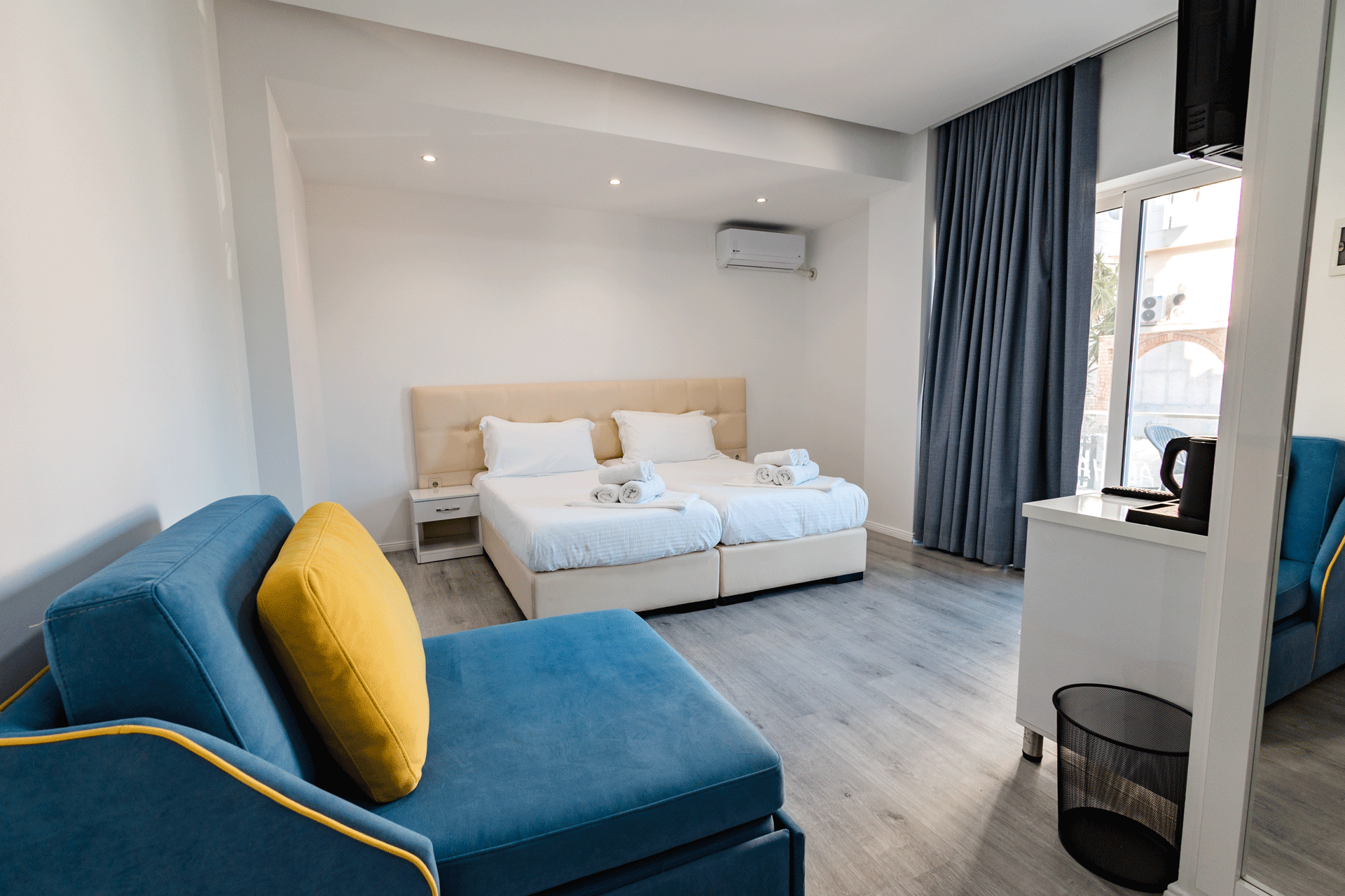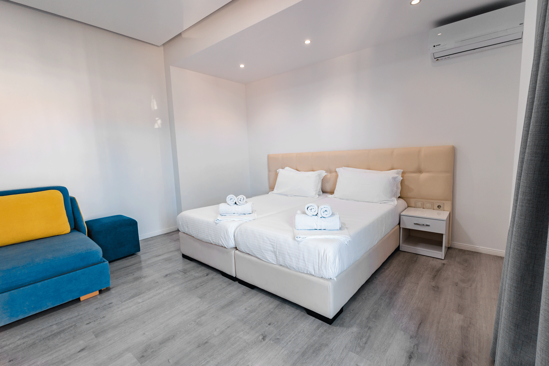 The Double Room is designed to offer a comfortable and inviting stay in a well-balanced, elegant setting. With a warm atmosphere and a practical layout, it provides everything needed for a relaxed and pleasant experience. Thoughtful details and a calm ambiance create a sense of ease, making it an ideal choice for couples or guests seeking simplicity without compromising comfort.