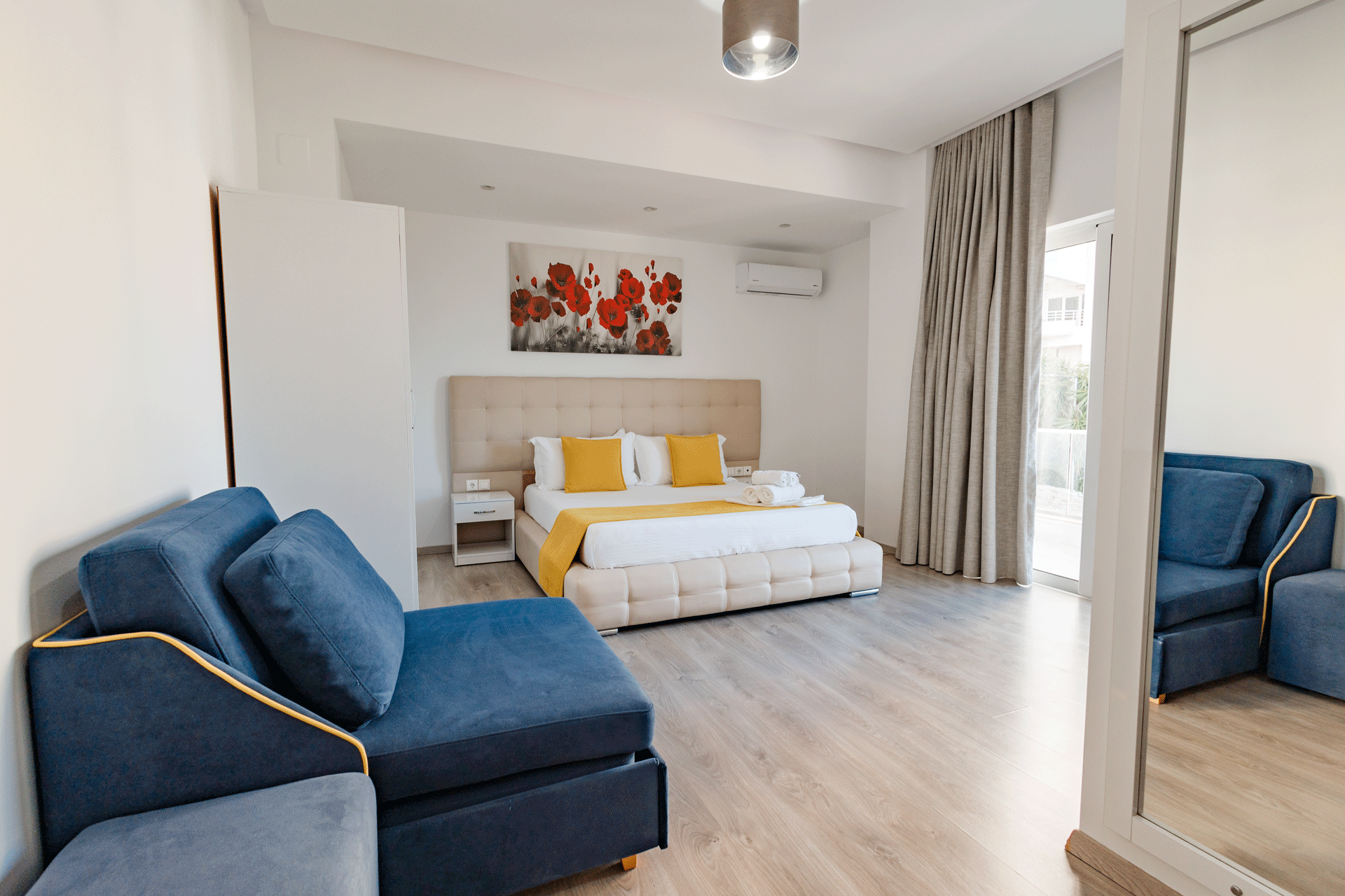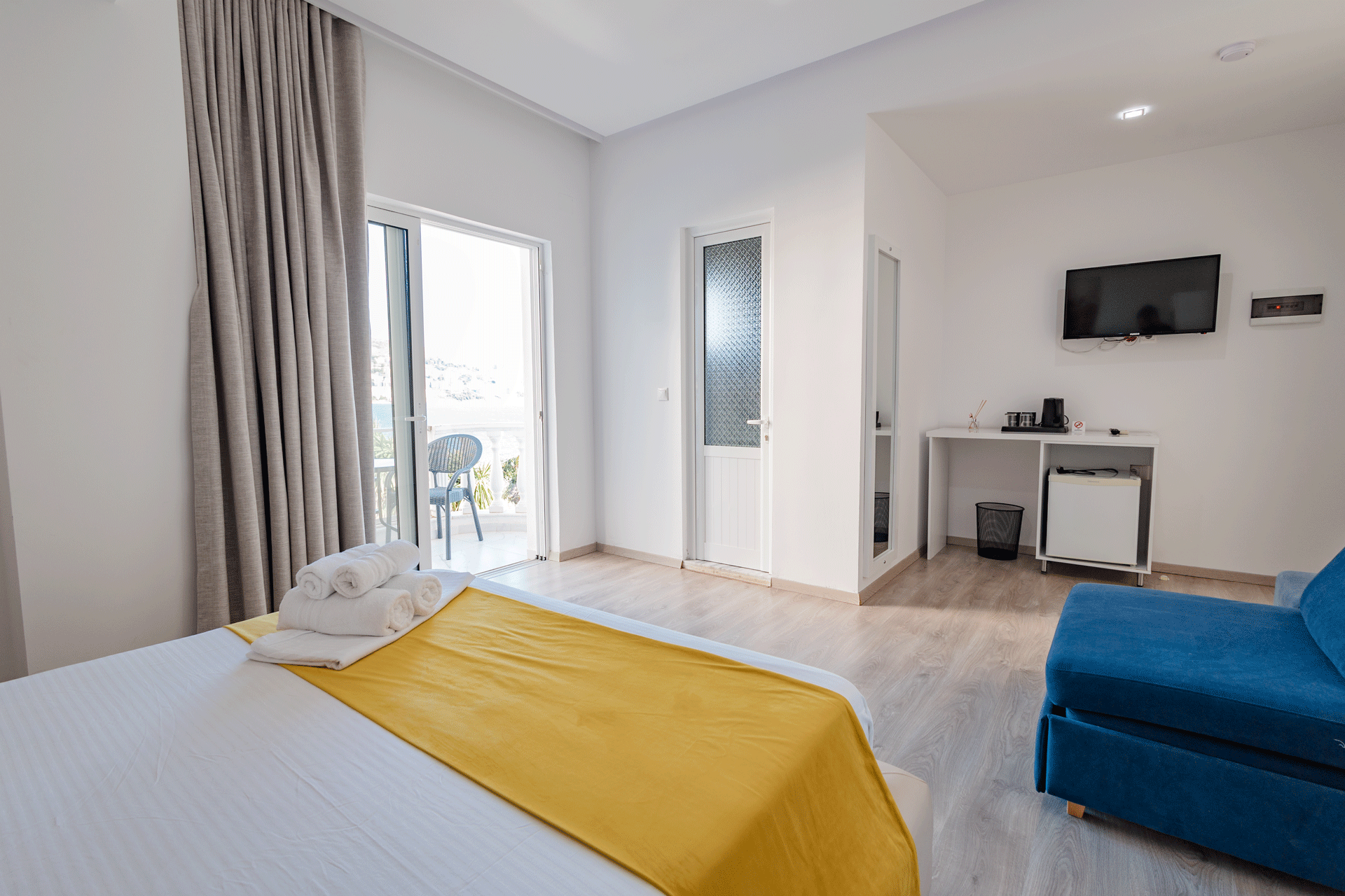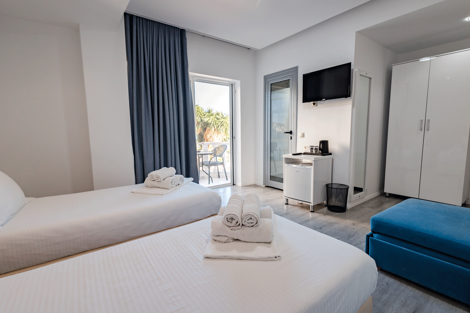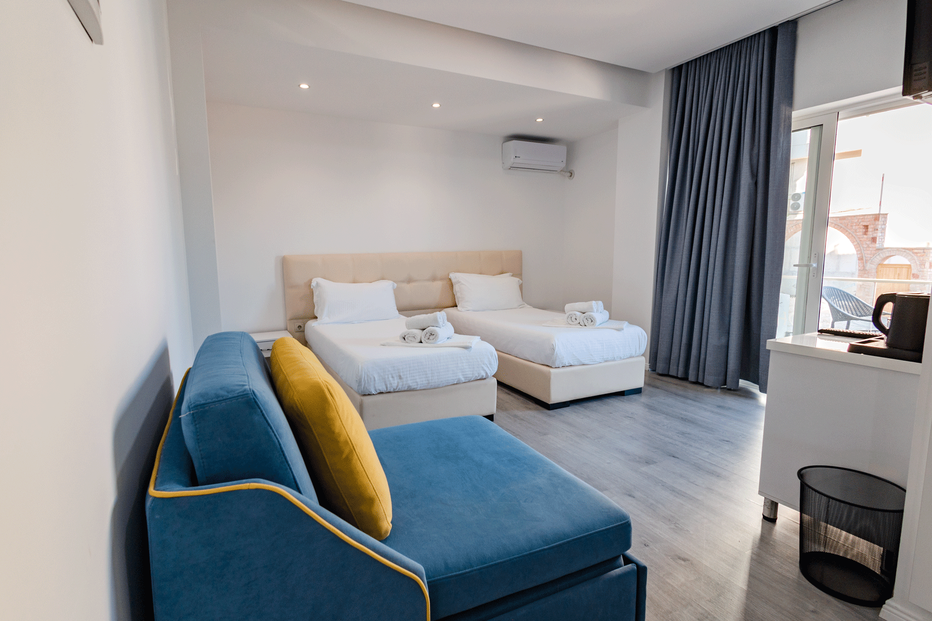 The Double Room is designed to offer a comfortable and inviting stay in a well-balanced, elegant setting. With a warm atmosphere and a practical layout, it provides everything needed for a relaxed and pleasant experience. Thoughtful details and a calm ambiance create a sense of ease, making it an ideal choice for couples or guests seeking simplicity without compromising comfort.